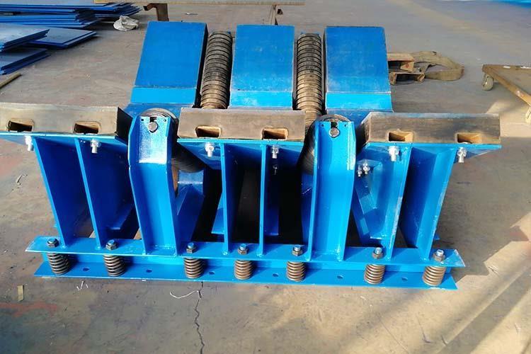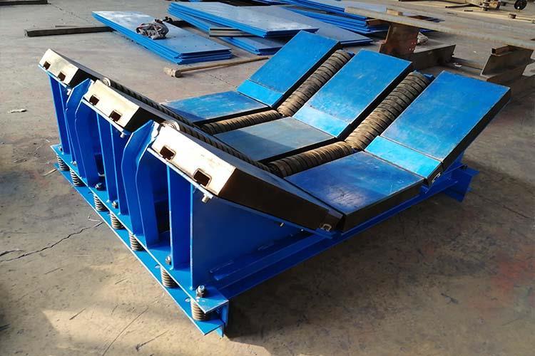 皮帶機(jī)緩沖床主要用于皮帶機(jī)導(dǎo)料槽下方的落料口處,當(dāng)物料下落時(shí),緩沖床利用自身彈性對(duì)物料下落到皮帶上的沖擊力進(jìn)行處理,使沖擊力達(dá)到很小,以保證皮帶機(jī)正常運(yùn)行。皮帶機(jī)緩沖床的表層緩沖條擁有五百萬分子量的高分子聚乙烯板面,該高板于皮帶呈面面接觸,使?jié)櫥赃_(dá)到很高,摩擦系數(shù)降至很低。