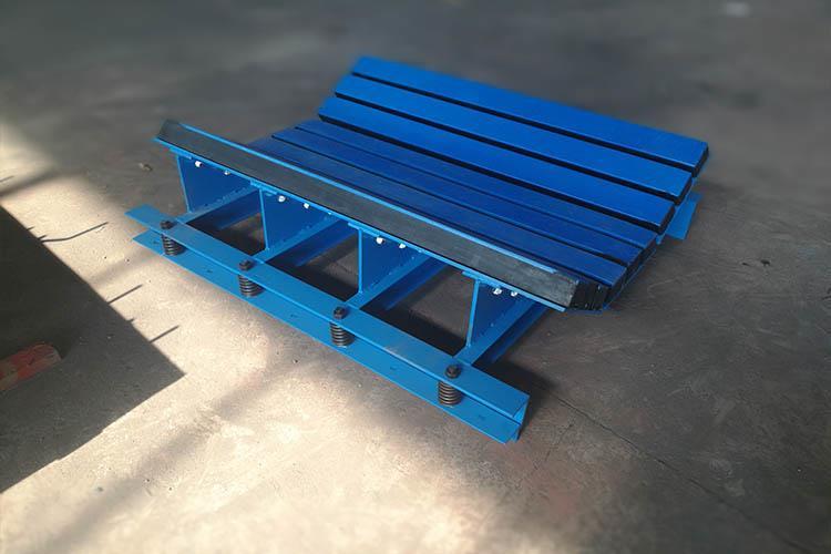 緩沖床的橡膠采用進(jìn)口天然橡膠、橡膠彈性高、含膠量大、橡膠密實(shí)度高、抗拉強(qiáng)度大、能大程度上吸收下落物料的沖擊力,可有效的避免物料下落時(shí)對(duì)輸送帶的沖擊。緩沖床床體表面采用高耐磨分子材料,分子量大于650萬,光滑表面,摩擦系數(shù)小,耐磨性好,使得輸送帶運(yùn)行時(shí)的摩擦力降到很低,廣泛用于礦山開采,礦井下巨型煤塊輸送。